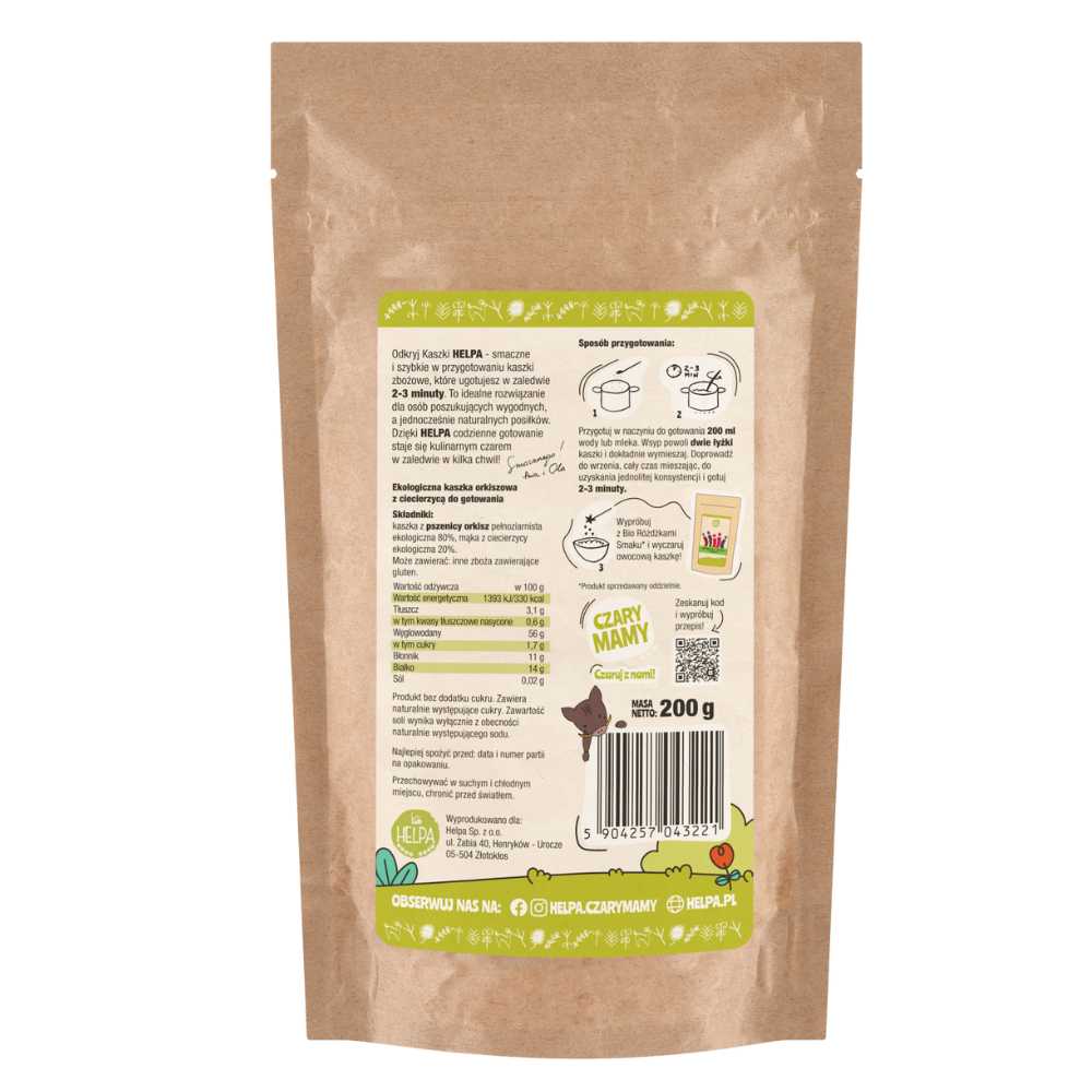 Bio Kaszka Orkiszowa z Ciecierzycą HELPA to prosty, zdrowy i smaczny sposób na dostarczenie organizmowi cennych składników odżywczych każdego dnia.