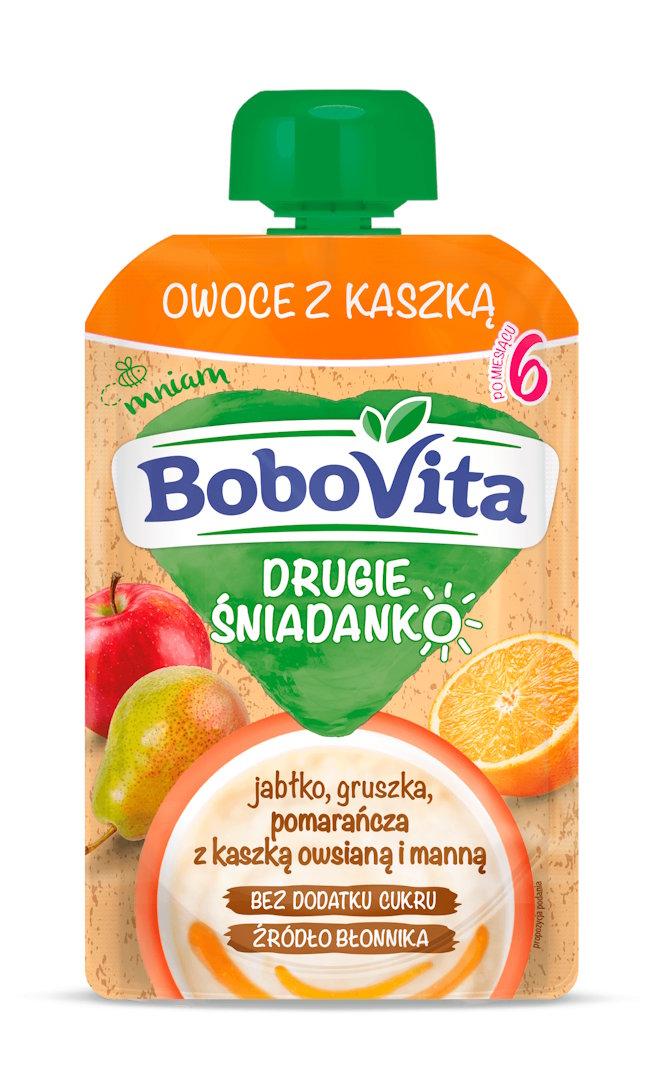 Drugie Śniadanko jabłko, gruszka, pomarańcza z kaszką owsianą i manną 100g BoboVita