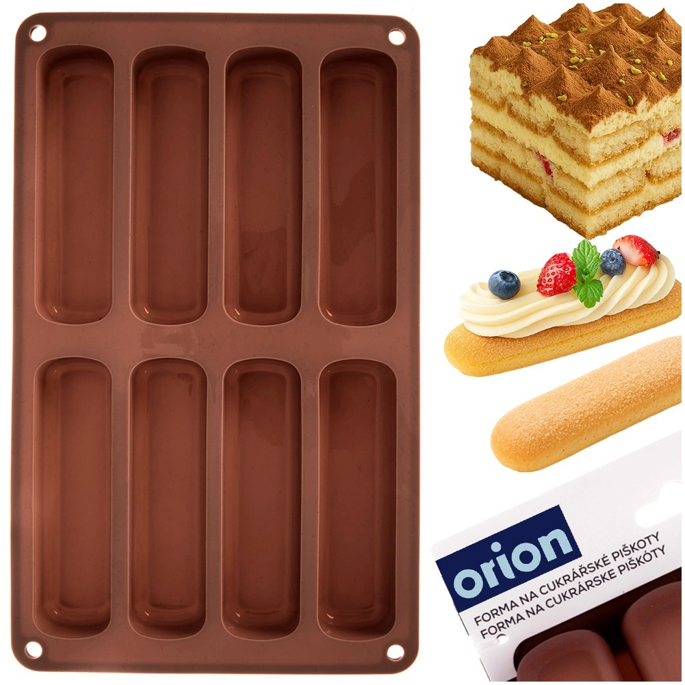 Silikonowa forma do wypieku biszkoptów to praktyczne rozwiązanie do przygotowywania domowych deserów i wypieków cukierniczych. Zapewnia równomierne pieczenie, wygodne wyjmowanie gotowych biszkoptów oraz łatwe utrzymanie w czystości. Oryginalny produkt czeskiej marki Orion. Wyprodukowano zgodnie z europejskimi standardami.