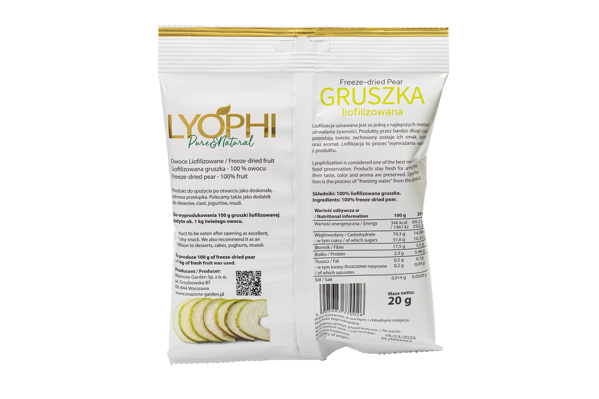 Gruszka liofilizowana LYOPHI – skład