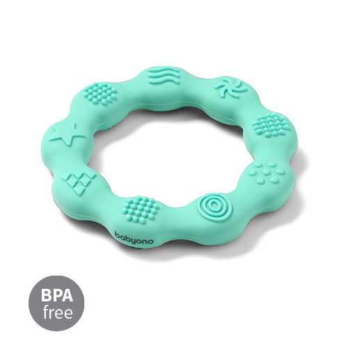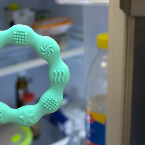 Materiał, z którego stworzony jest gryzak Babyono RING, pozwala na obniżenie jego temperatury w lodówce dla stworzenia dodatkowego ukojenia dla dziecka.