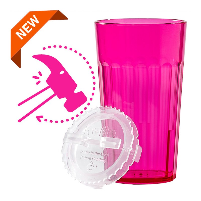trwały – wykonany z nietłukącego materiału, dostępny w kilku kolorach: różowym, niebieskim i przezroczystym.
