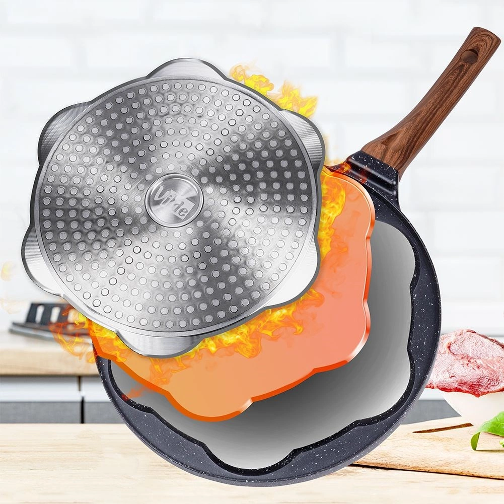 Patelnia granitowa o średnicy 26 cm z 7 otworami z różnymi buźkami. Idealna do przygotowania naleśników, placuszków oraz jajek. Nadaje się do wszystkich rodzajów kuchenek oraz do mycia w zmywarce.