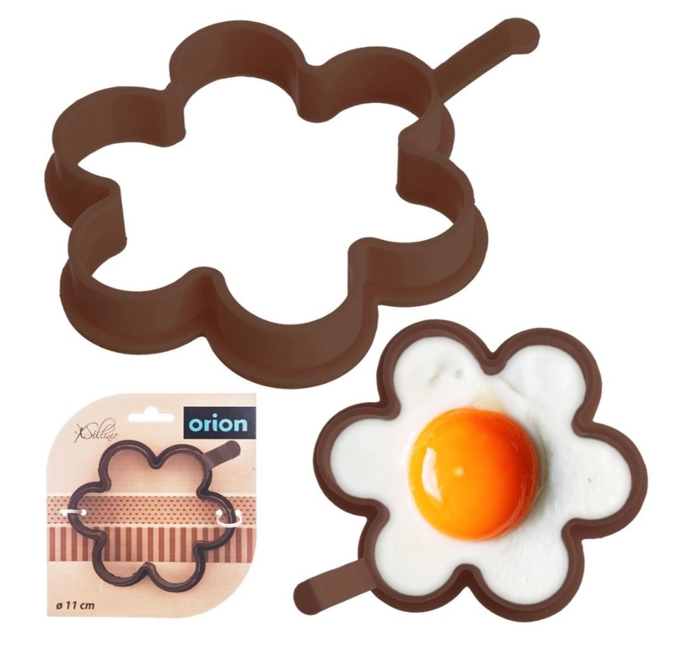 Silikonowa forma do sadzonych jajek. Umożliwia przygotowanie jajek w kształcie kwiatka. Możemy wykorzystać ją również do zrobienia mini naleśników, omletów czy pasztecików. Forma nie wchłania zapachów i smaków. Jajko ani ciasto nie przywiera, idealnie się wyciąga. Do wypieku nie używa się żadnego tłuszczu czy mąki. Forma silikonowa jest lekka, elastyczna, zajmuje mało miejsca i jest odporna na zmiany temperatury. Bardzo dobrze przewodzi ciepło. Oryginalny produkt czeskiej marki Orion. Wyprodukowano zgodnie z europejskimi standardami.
