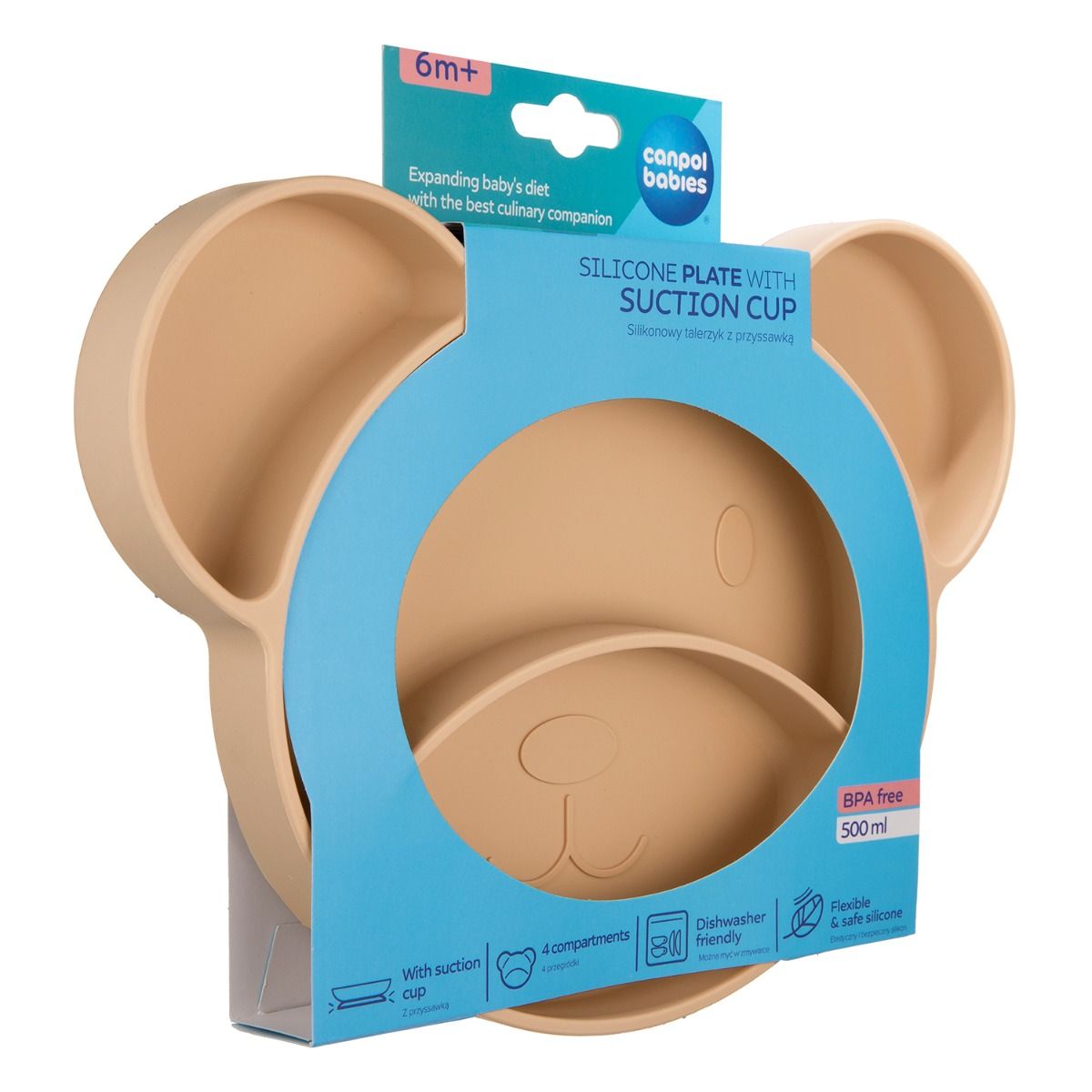 Silikonowy trójdzielny talerzyk Canpol babies z przyssawką MIŚ (beżowy) – wygodny i bezpieczny!