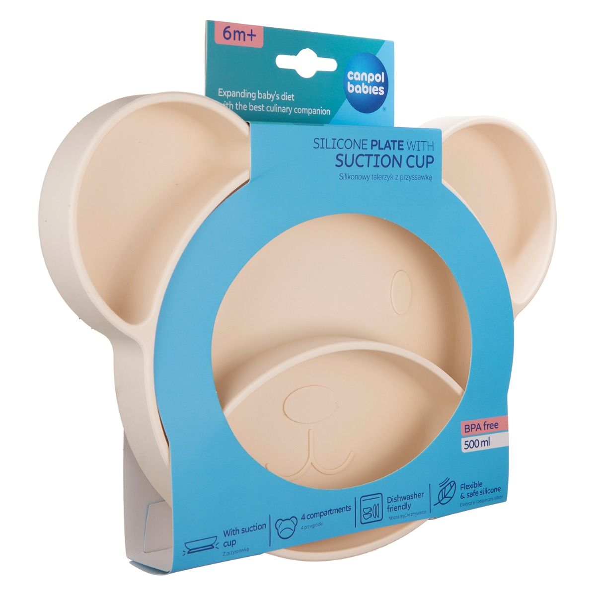 Silikonowy trójdzielny talerzyk Canpol babies z przyssawką MIŚ kremowy