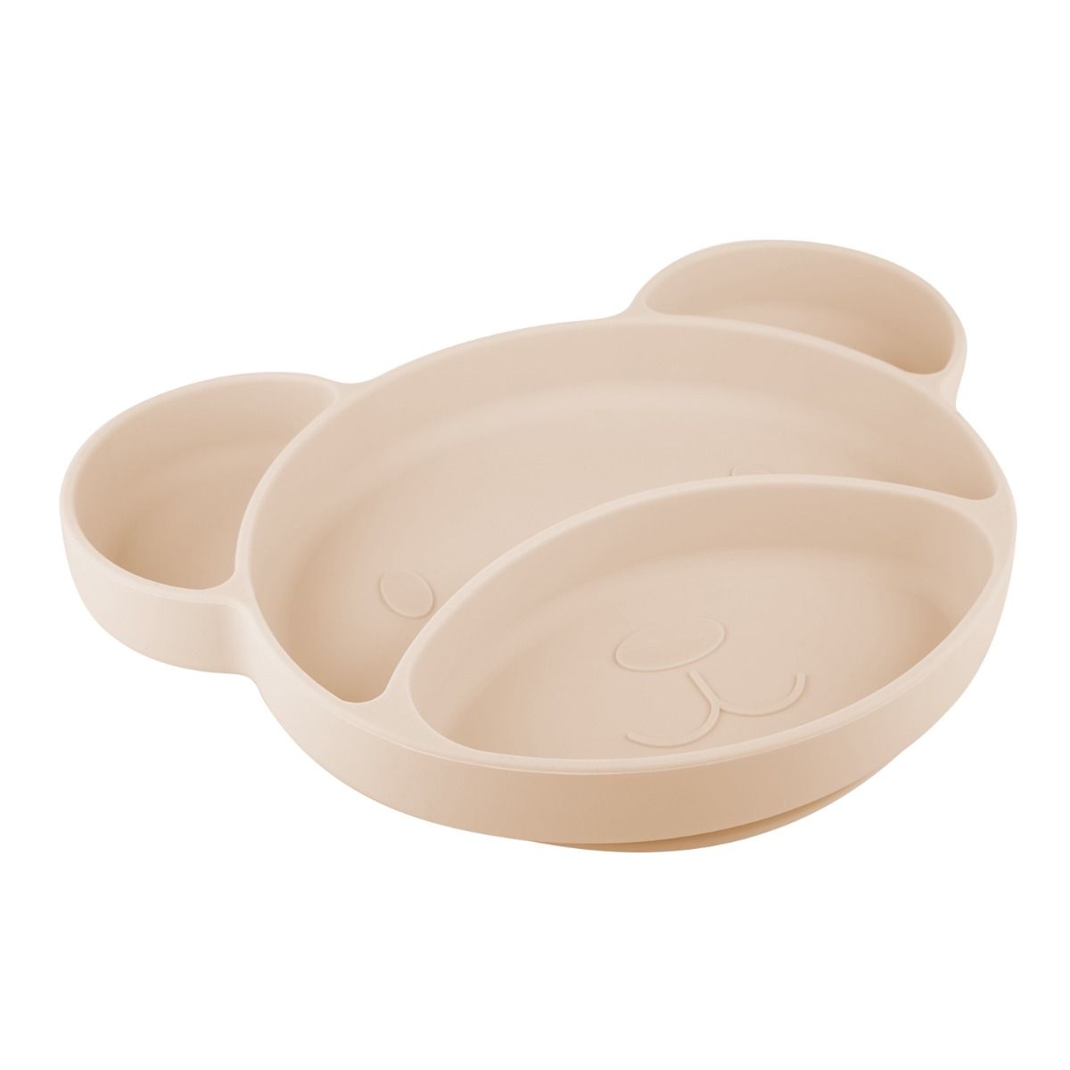 Silikonowy trójdzielny talerzyk Canpol babies z przyssawką MIŚ (kremowy) – bezpieczne poznawanie nowych smaków!