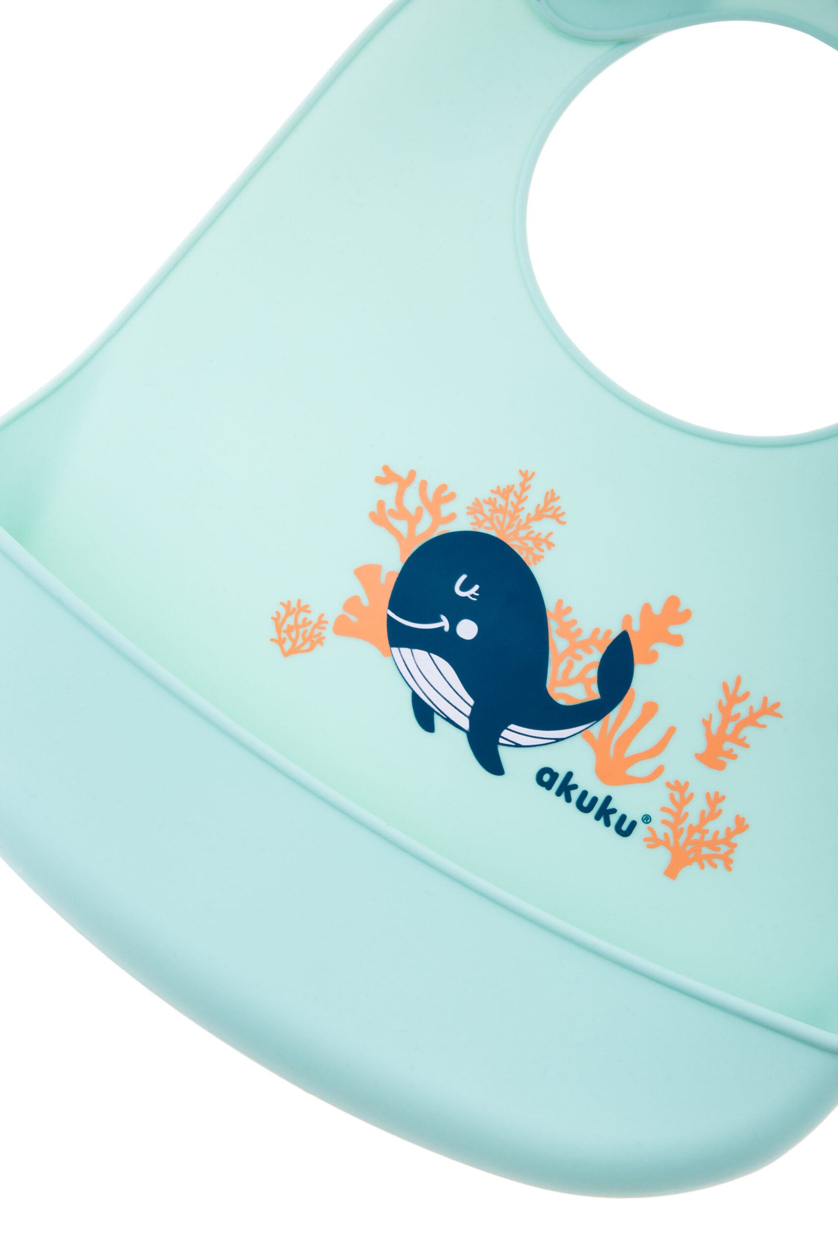 Śliniak silikonowy z wielorybem AKUKU – skuteczna ochrona ubranek przed zabrudzeniami podczas jedzenia