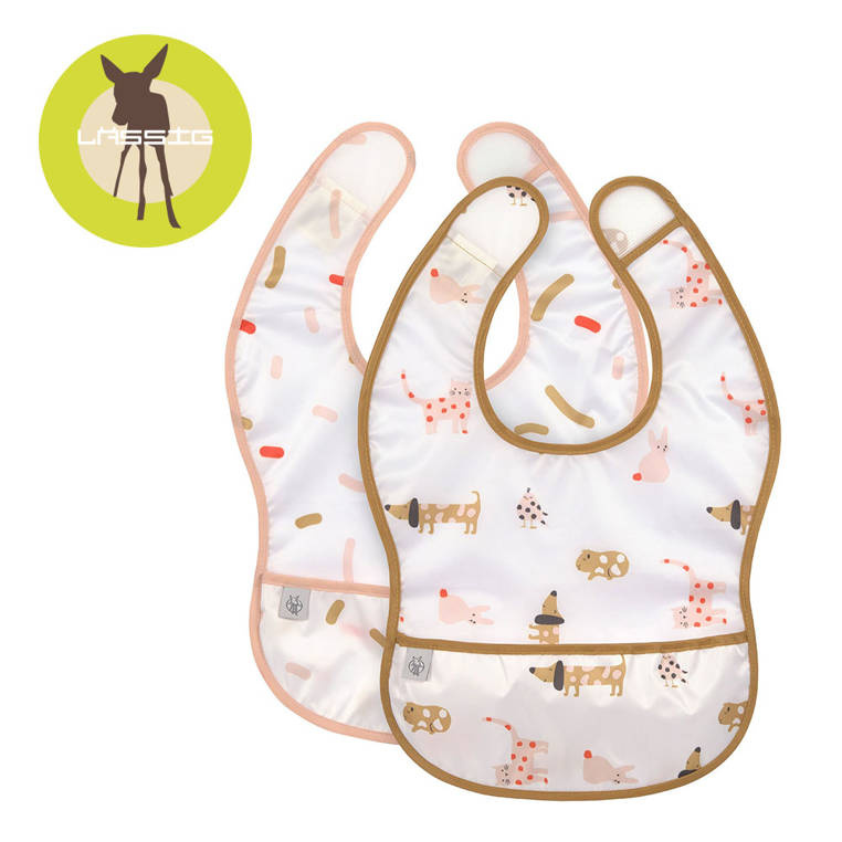 • Zestaw dwóch praktycznych, łatwo zmywalnych śliniaków niemieckiej marki LASSIG.